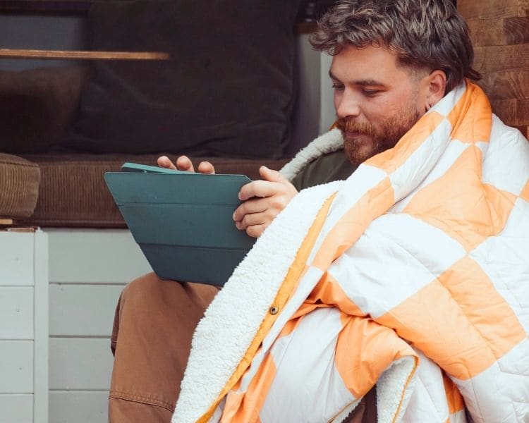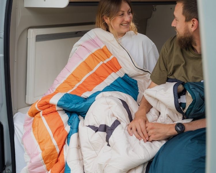 Découvre la couverture Queen Cloudtouch® : un confort surdimensionné pour la vie en van, le camping, les voyages en voiture et les journées vraiment douillettes à la maison.